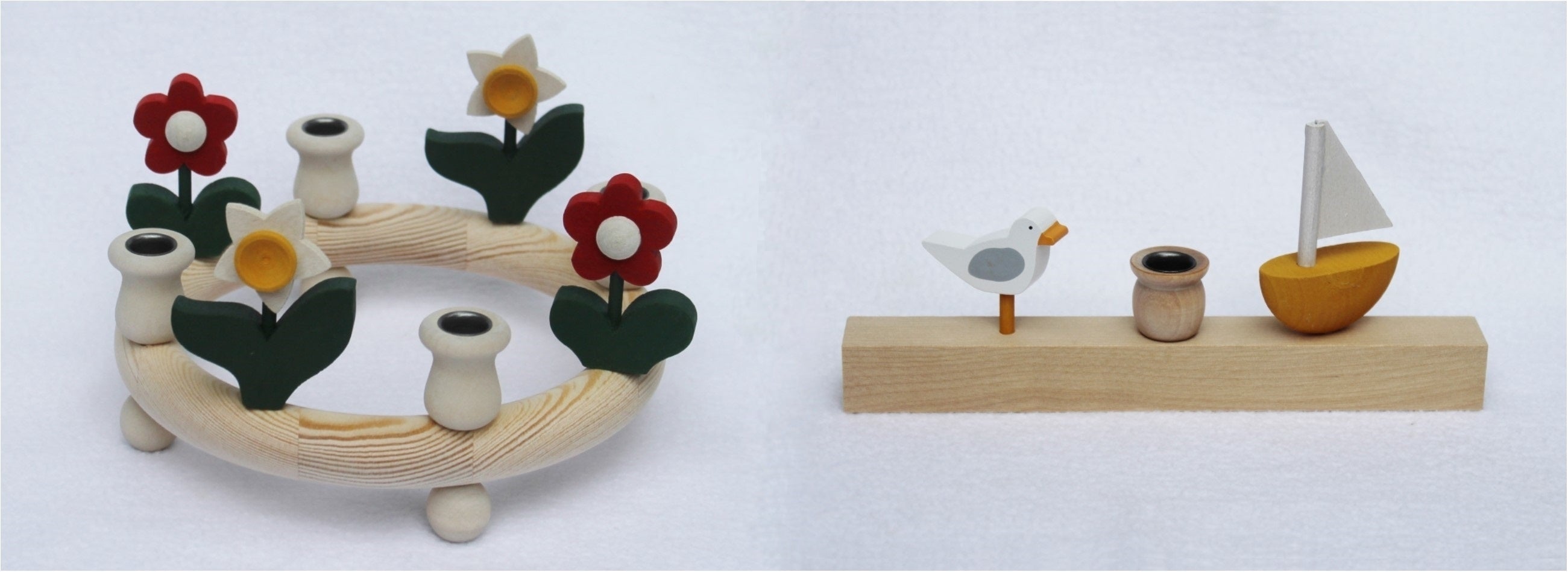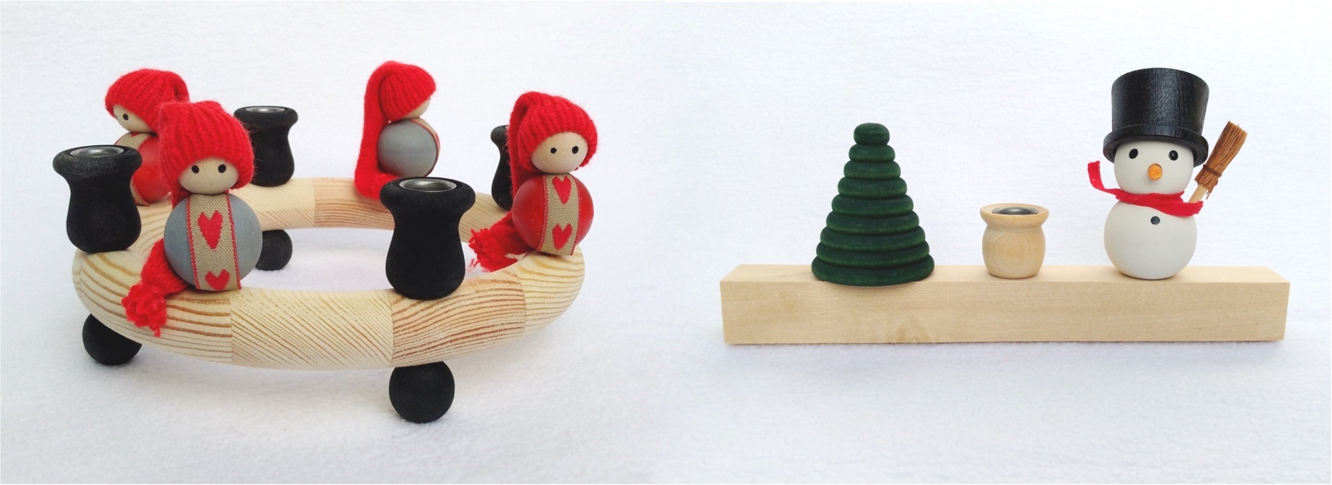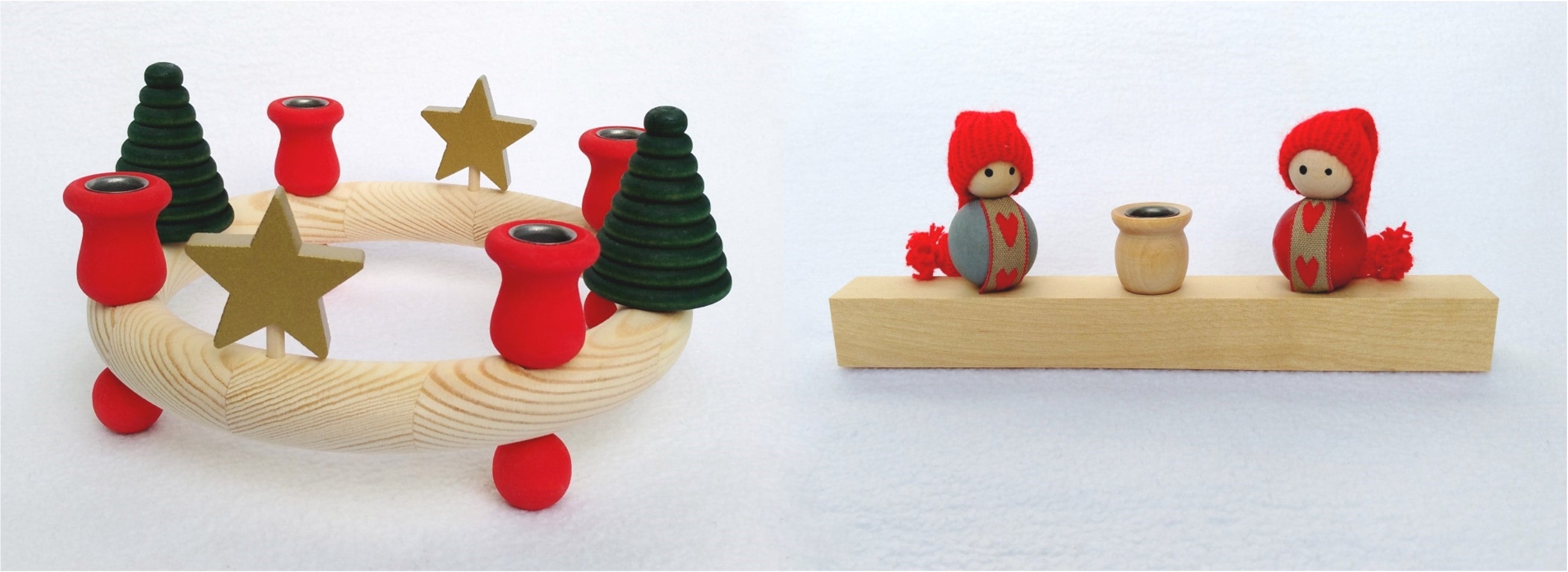 Op de kransen passen 4 kleine decoratiefiguren en 4 kaarsjes met een doorsnede van 12 mm. Op de lijsten passen 2 kleine decoratiefiguren en 1 kaarsje.