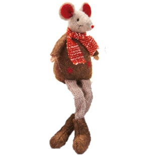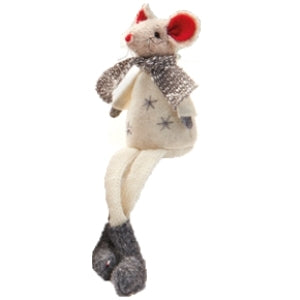 Deze leuke muis van stof kan je onder de kerstboom of gezellig ergens in huis neerzetten. Door zijn hangende benen staat het ook erg leuk als je hem ergens op een rand zet, van bijvoorbeeld een vensterbank of een kast.
